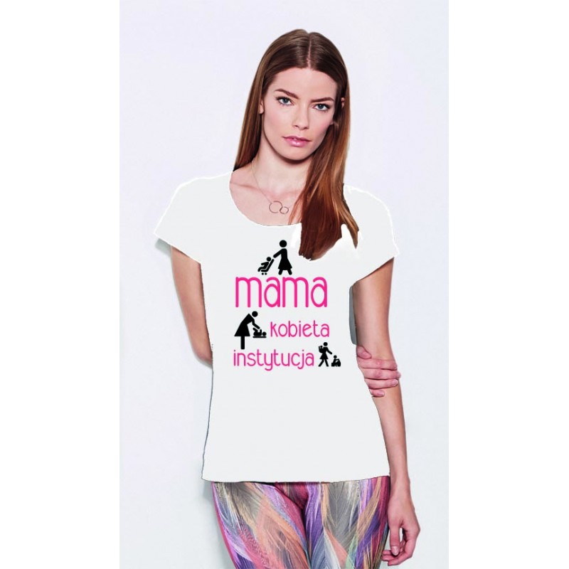 Koszulka damska z nadrukiem mam kobieta instytucja - super prezent na Dzień Mamy :)