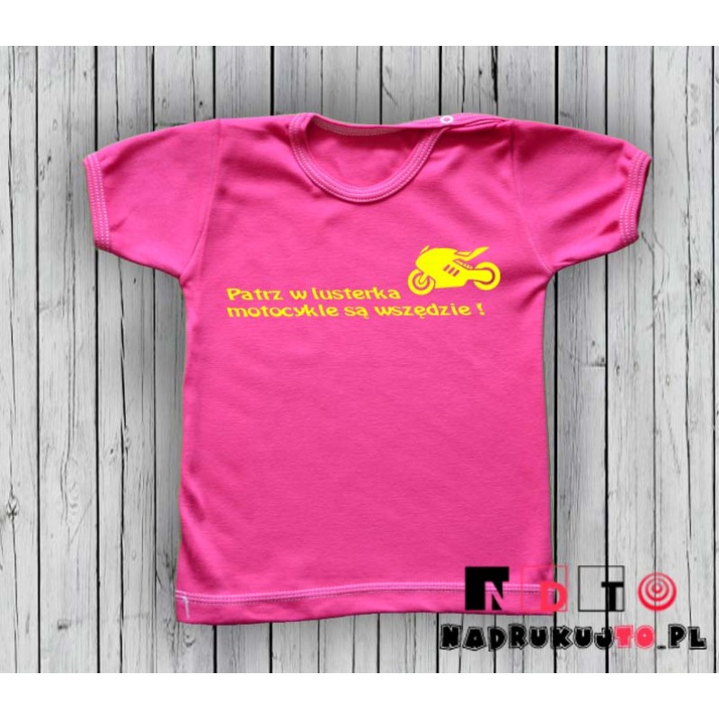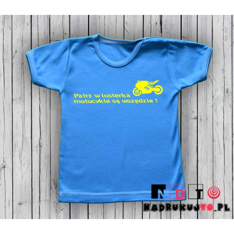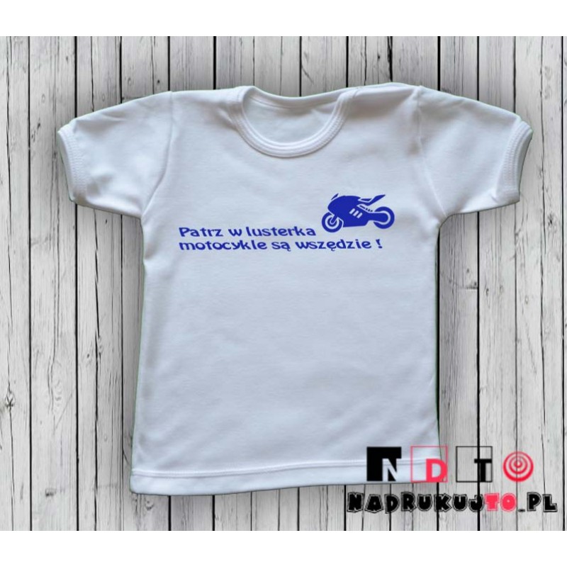 Koszulka niemowlęca z nadrukiem - Patrz w lusterka - motocykle są wszędzie!