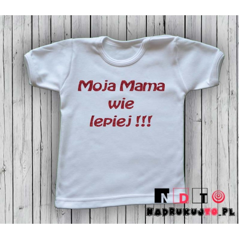 Koszulka niemowlęca z nadrukiem - moja mama wie lepiej