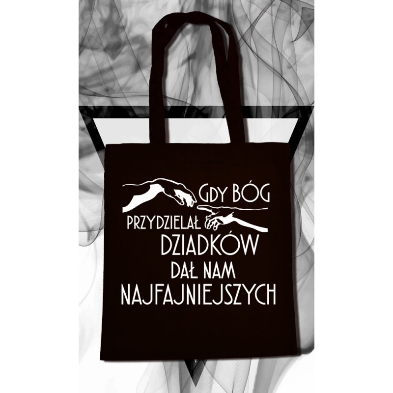 Ekologiczna torba bawełniana z unikatowym napisem: Gdy Bóg przydzielał dziadków dał nam najfajniejszych.