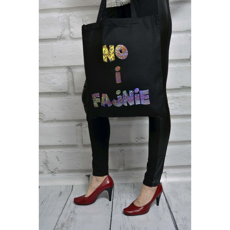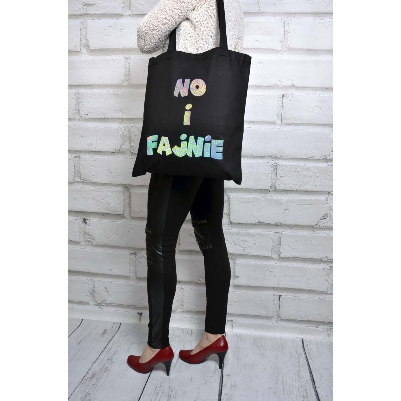 Ekologiczna torba bawełniana z unikatowym napisem: No i Fajnie. Po co się przejmować ;)